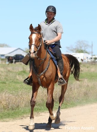 Hidden Assetts (aka "Ace") is stretching out across the finish line to a 1st place + BC Award in a 50 mile race in Mt. Pleasant, Texas, April 2019. This makes his record for 2019 a perfect 3 wins from 3 rides, with 2 BCs! Ridden by Alisija Zabavska- what a perfect pair. Hidden Assetts is a 7 year old son of DA ADIOS+/, bred by Cre Run.