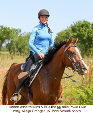 September 12th weekend 2015, Hidden Assetts (DA Adios x Hidden Treasure), affectionately known as "Ace," won a 55 mile race and got the Best Condition in Oklahoma. Congratulations to the Grangers!
