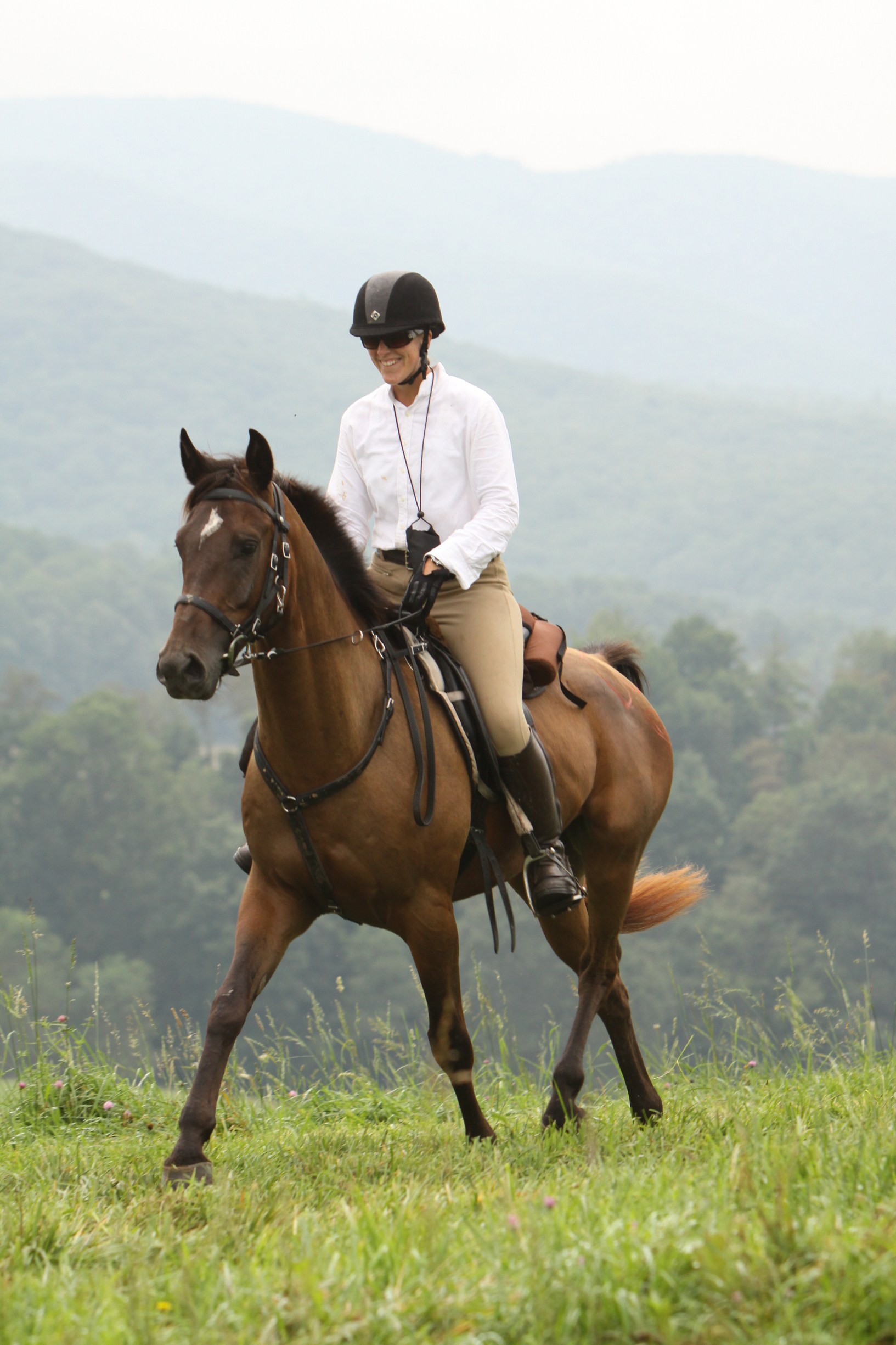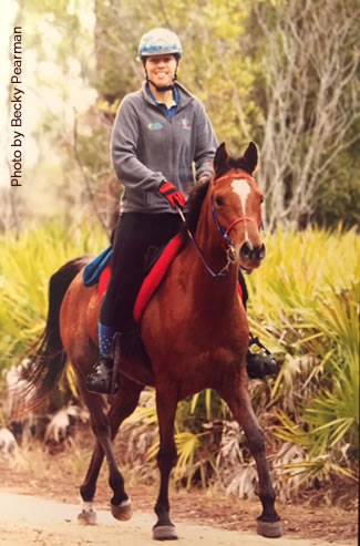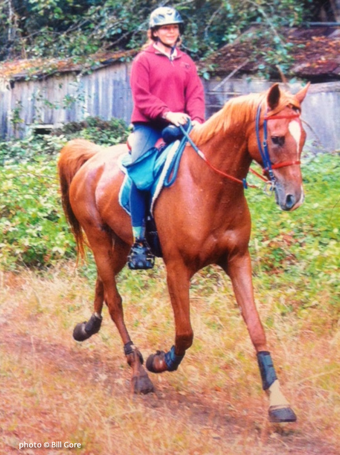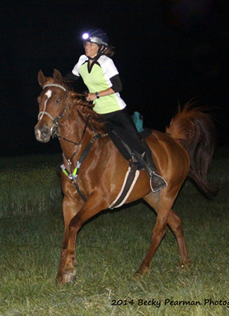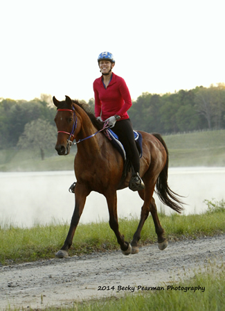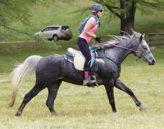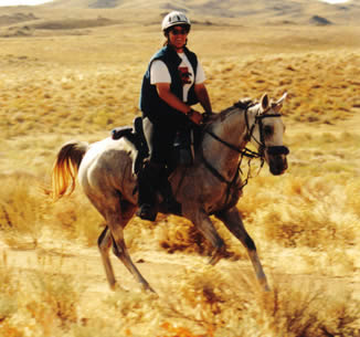 "My goal is always to come home with a sound horse to go again, whatever the sport," she said. "I had the good fortune in that my former husband, Aubrey Downs, is a wonderful horseman and gave me, with Valerie and Lori, a deep appreciation of training horses with long, slow, steady work. I don´t race and rarely know where I am in a ride until it is over. I have three good Arabians now. Two of them I hunt regularly on and with one of those I do endurance as well, and I do solely endurance with Sage."
