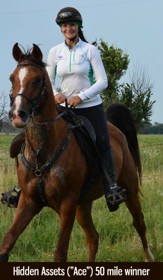 Alisija Zabavska reports Hidden Assetts (aka Ace) won yet another 50 miler in Boswell, Oklahoma past weekend AS WELL AS the Best Condition Award!