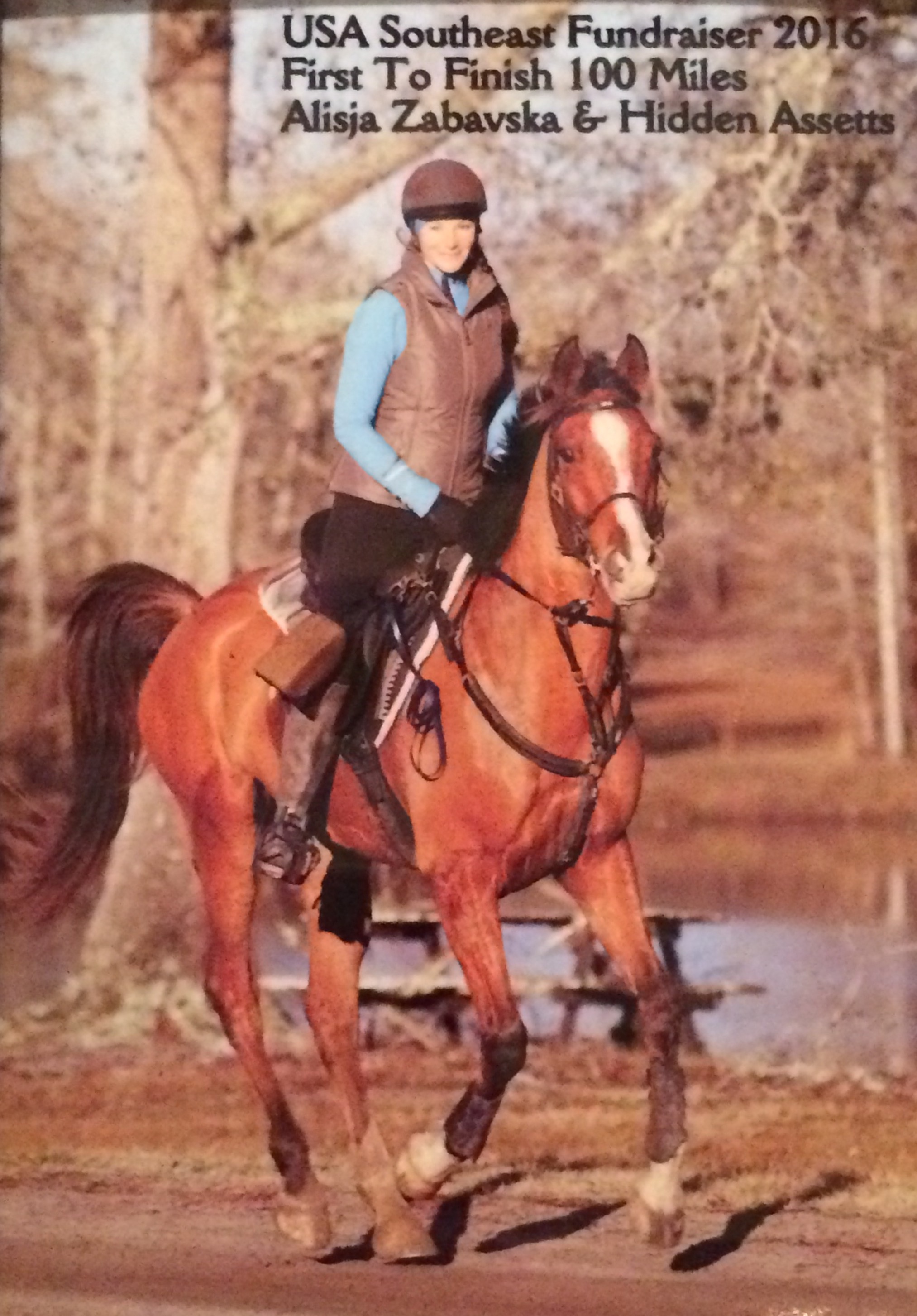 "In Houston, Texas at Brixton Bridge in November 2015 "Ace" came in strong 3rd place in FEI 75! He is my amazing Assett that was well hidden from a sale to Middle East. A million thank you for hiding him so well!!!"
