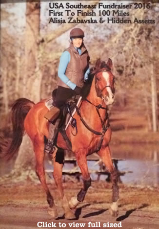 "After winning the FEI and overall 50 mile race in Dunnellon, Florida in January, 'Ace' came in strong 3rd place at the FEI 75 mile race in Texas. Both times ridden by Charles Granger." ~ Alisija Granger