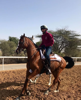 Royal Bull is doing a great job as the exercise pony- he loves the racing babies they are training at W'rsan Farm. He is by DA Adios+/, out of Royal Atheena+/, bred by Cre Run and owned by HH Sheikh Sultan Bin Zayed Al Nahyan.
