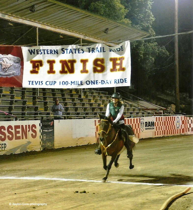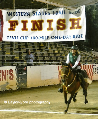"I want you to know that Djubilee gave me a lovely ride at the Tevis Cup on Saturday. We finished in 36th place out of 186 starters and 107 finishers. She was strong and eager the entire way, a total delight. I'm attaching her finishing photo so you can see what fun we were having. I'm very glad Heather and Jeremy sent her west!"