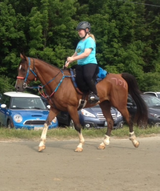 "I just wanted to give you an update on Spot Me Mon! This is his second year competing in endurance, and he just finished the Moonlight in Vermont 75 mile ride on 7/19/14. It was his first time doing a distance over 50 miles. He was energetic all day and really loves his second career! He now has 275 AERC miles.