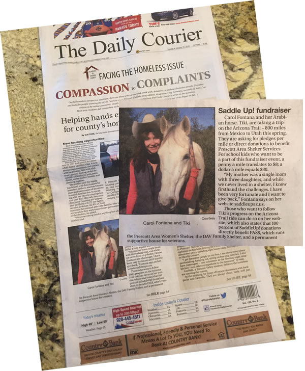 Tiki Barber and Carol Fontana completed a remarkable feat on August 15- riding their final segment of the 800 mile Arizona Trail. The thrilling ride from the Kaibab Trailhead at the North Rim of the Grand Canyon down to Phantom Ranch and back up to the Kaibab South Rim Trailhead was on Carol's bucket list for a long time, and marks yet another amazing accomplishment for the great horse and rider team.